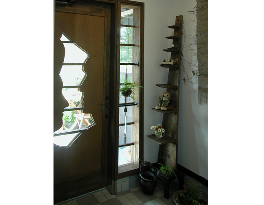 入り口は車庫からポーチへ上るエレベーターを設置しました。