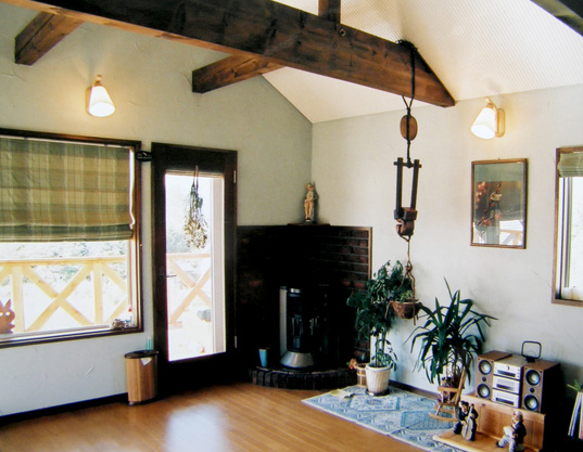 建て主の好きなたんぽぽ色と、緑の下見板張りで個性的な外観となっています。
