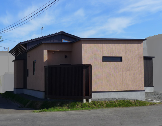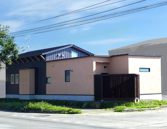 センス豊かな建て主は、当初のイメージパースと違う色を選び、 ぬくもりを感じる外壁や屋根で仕上がりました。(2013年9月完成)