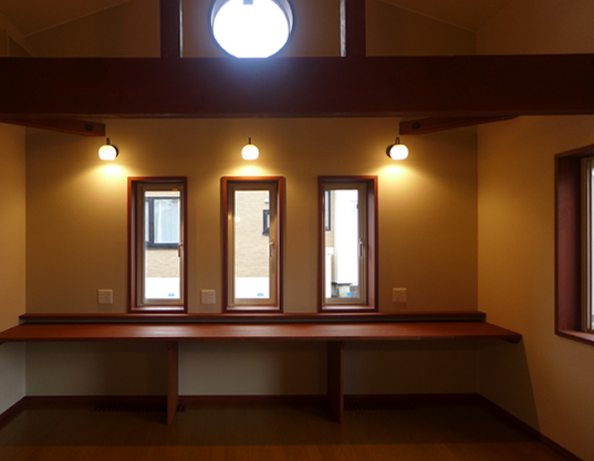 - 子供室のロフトから居間、台所と会話できるように