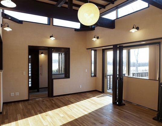 鶴居の地をこよなく愛し、時間をかけて探し求めた場所は 鶴居村下幌呂原野。 東南方向に宮島岬を望む白樺林に建つ住宅です。