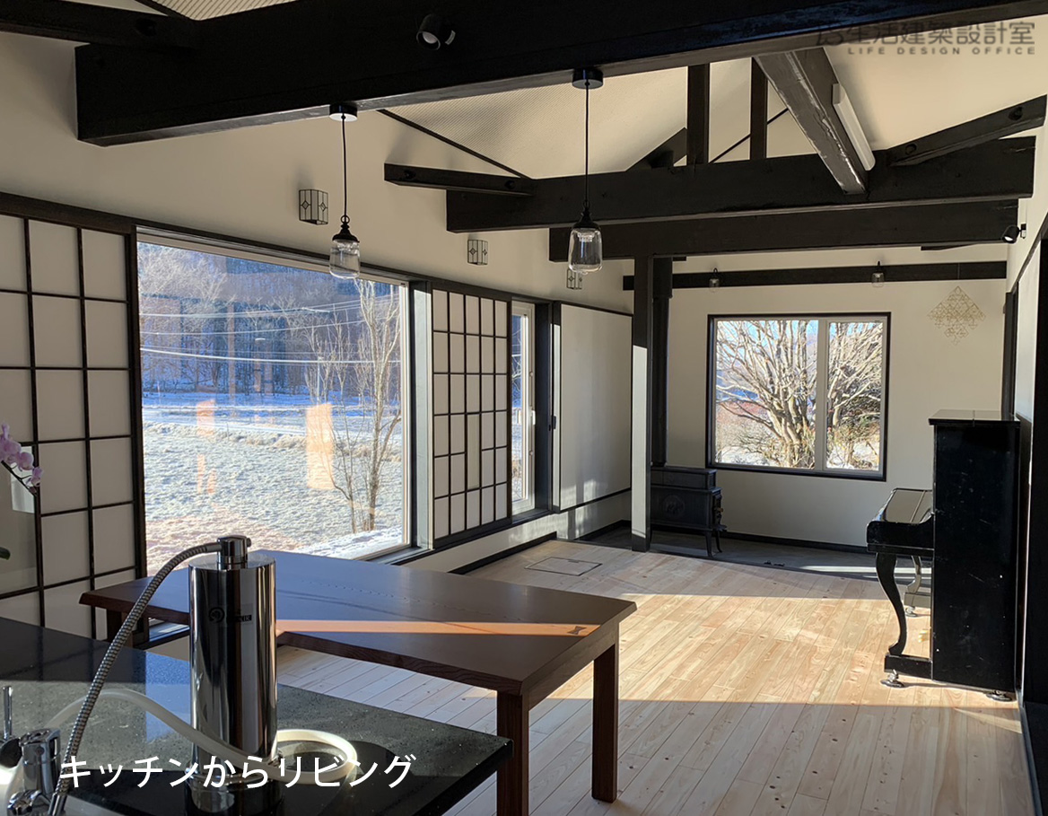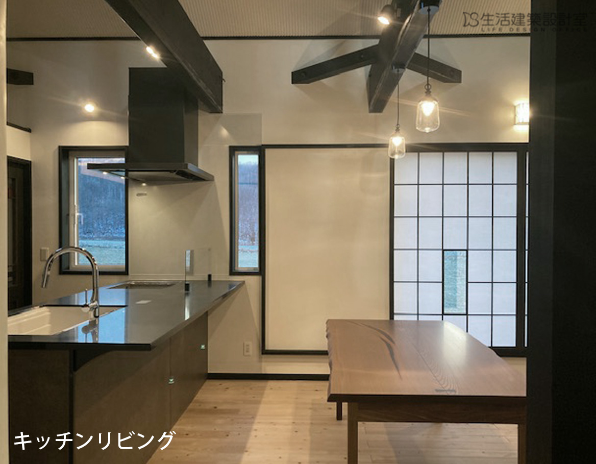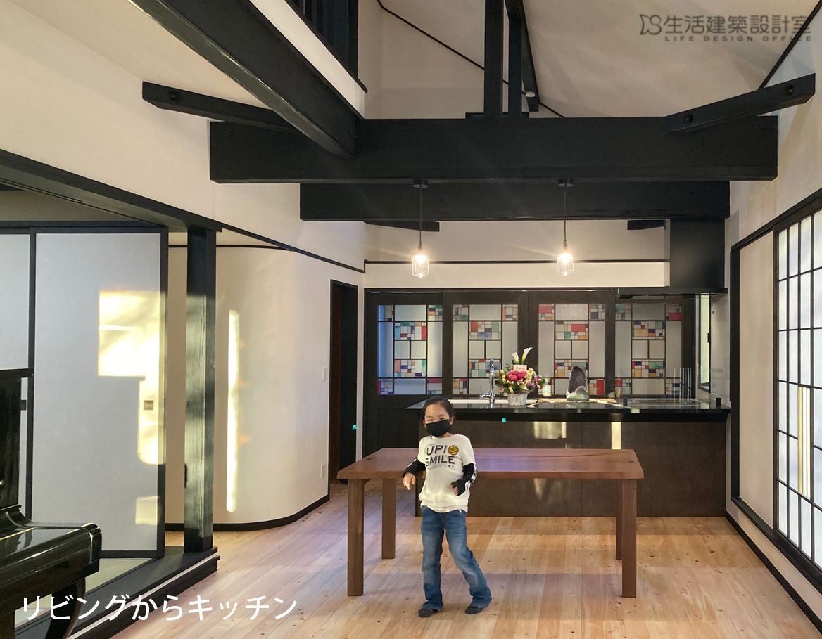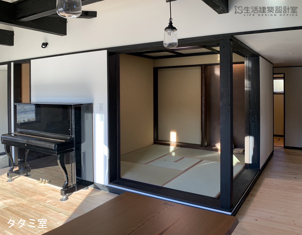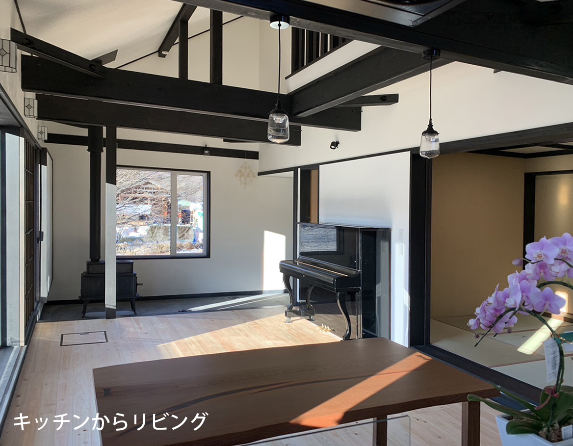 そんな居間空間(LDK+タタミ室+土間玄関)での暮らしができる素敵な住まいになりました。(2022年12月12日完成)