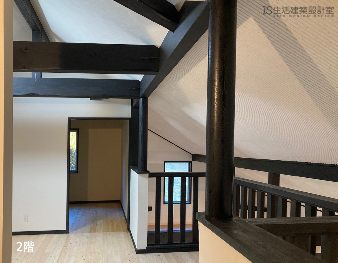 - 吹抜けと階段をとおして1~2階の空気が行きわたる