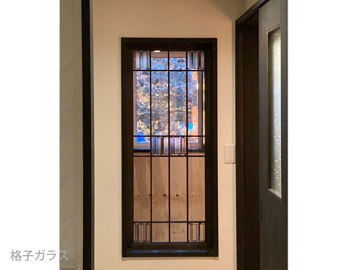 そしてかわいい照明と格子模様のガラスがある・・・。