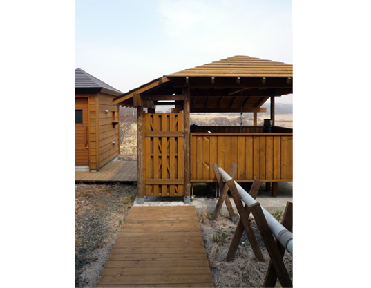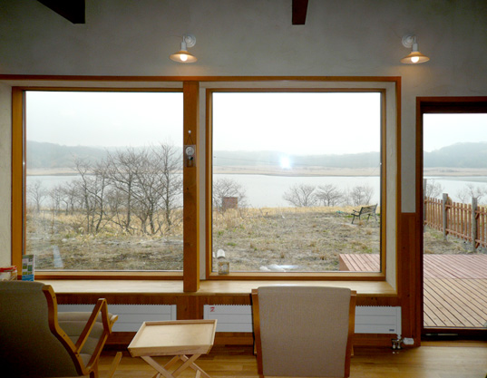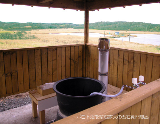 北海道の東、浜中町にある霧多布(きりたっぷ)湿原の自然ガイドとベッド・アンド・ブレックファストのペンション。稚内の珪藻頁岩塗壁の客室から見える景色は最高です。 五右衛門風呂でポロト(幌戸)沼と一体に。 (2003年完成)