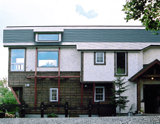 店舗併用住宅です。2階が眺望広がる喫茶店になっています。窓からは季節のうつりかわりや運がよければタンチョウ(鶴)がゆったりと飛んでゆくのを見ることができます。 「すいとんセット」が好評です。 靴をぬいでどうぞ。 早春4月から晩秋11月まで金、土、日曜日の週末限定営業です 。(2009年完成