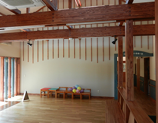 レクリエーション活動などを行うホールや地域活動支援センターもある約340㎡の平屋です。