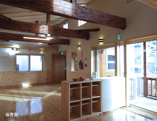 増築に当たっては、生活建築設計室の柏木茂さんに設計をお願いし狭い土地を有効的に使い、既存の園舎とつながった念願の0.1歳児室が完成しました。